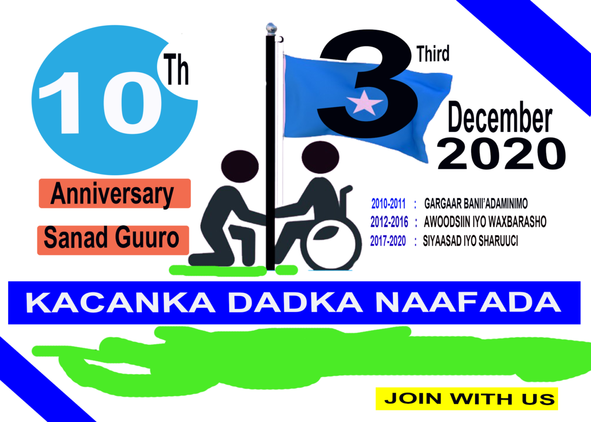 Waxaa sharaf weeyn inoo ah qabashada xaflad weeyn oo lagu maamusayo maalinta dadak naafada aduunka taas oo si isku mid ah uga dhacada duniada aan ku noolnahay. Dadka naafada somaliyed waxaa ay wadaaan olole xoogan oo lagu abaabulo maalin ka dwuan maalmahi hoore ee la xusi jiray malinta naafada aduunka